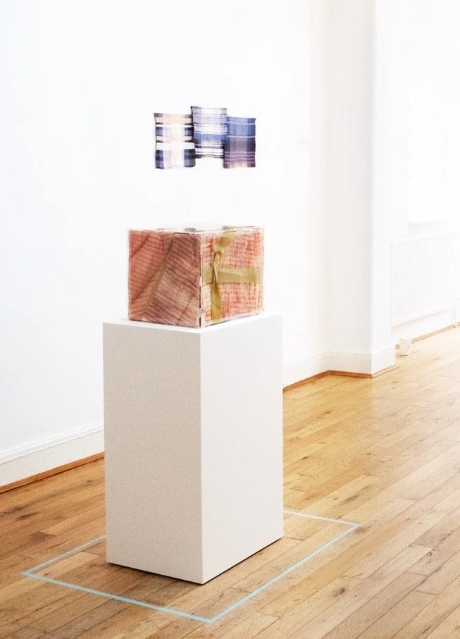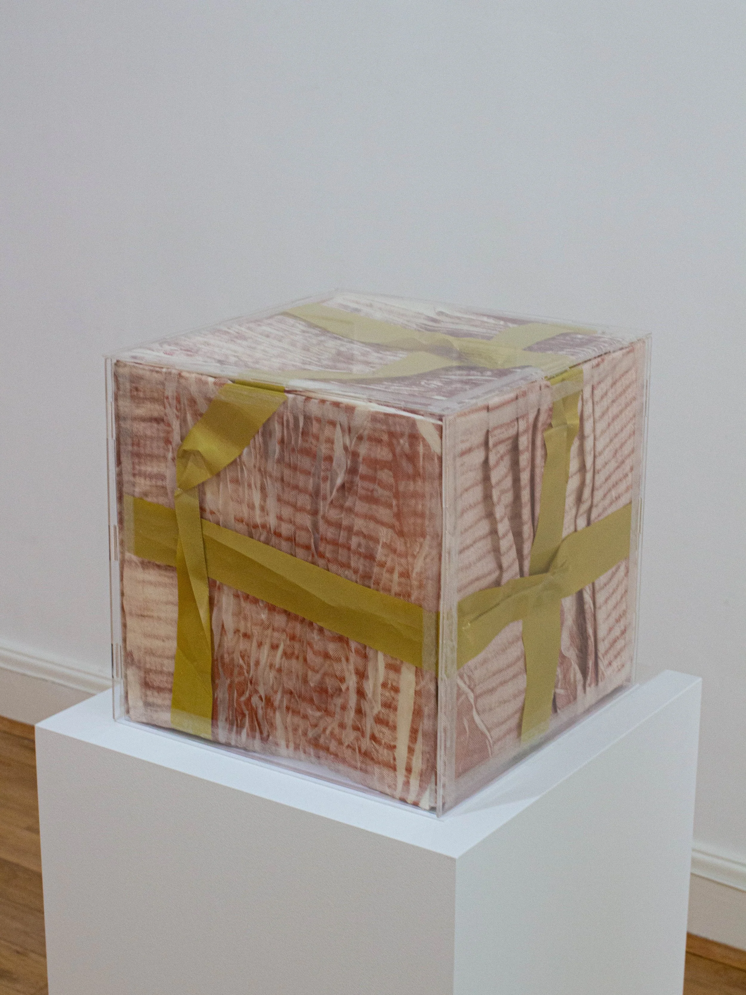 This work repurposes discarded objects, using the box as a metaphor for personal everyday life, highlighted through its capacity to fold and unfold. By integrating interlocking acrylic panels, the arist explores new forms and functions, challenging conventional views of the box. The transformation of two-dimensional collages into three-dimensional art through the box’s stucture pushes boundaries while preserving the integrity of craftsmanship